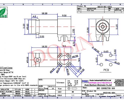 在下文中,主要会展示德索五金电子bnc连接器的图纸信息、电器性能、机械性能、环境性能四个方面的内容,旨在帮助客户更好了解我们的产品。购买具体的产品,可以进入产品频道查看每一款产品的详细参数。 BNC连接器产品界面 第一、电气性能 阻抗:…